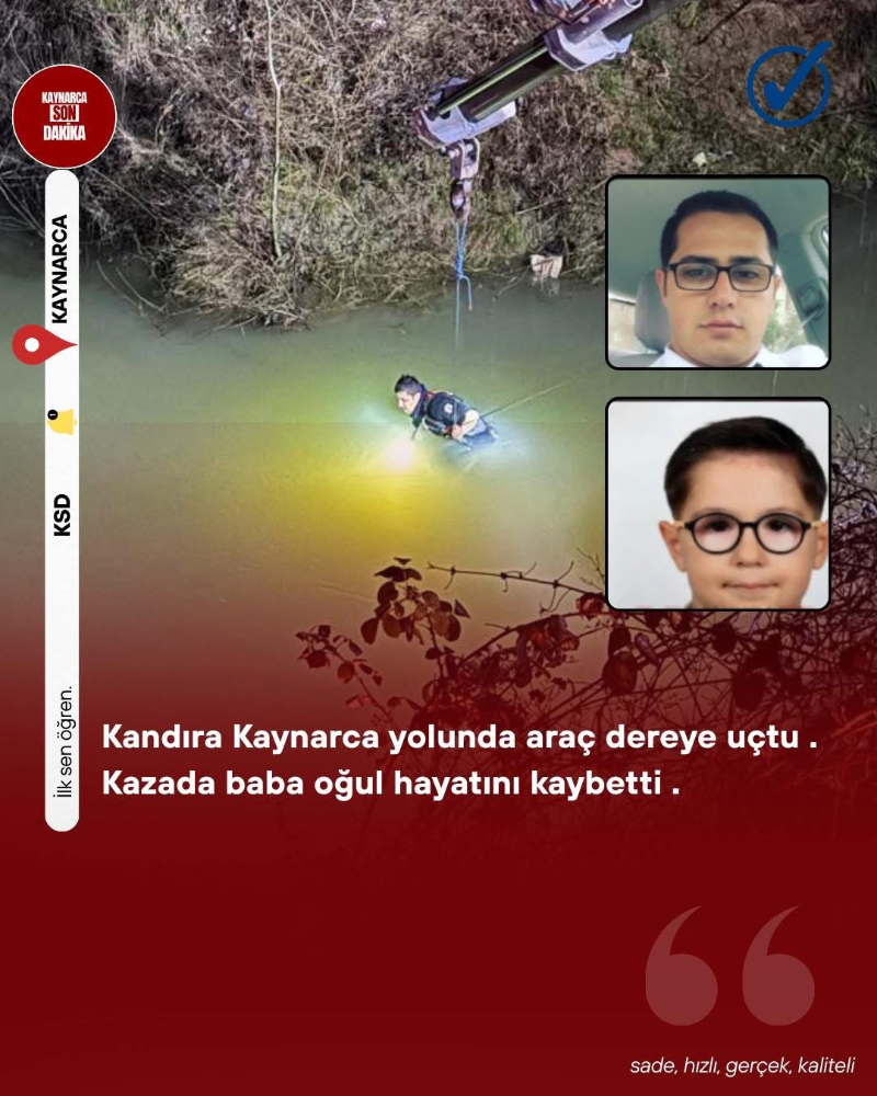Kocaeli’nin Kandıra ilçesinde çaya uçan otomobildeki baba ve oğlu hayatını kaybetti.