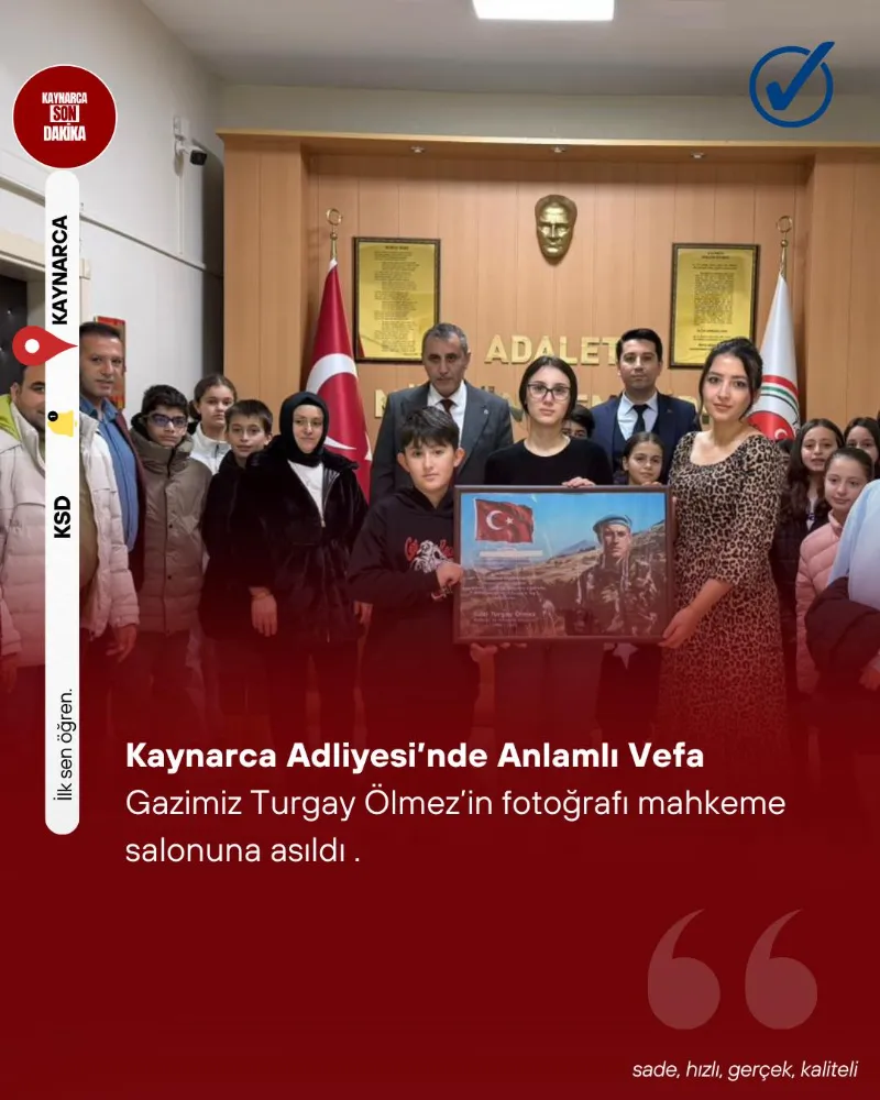 Hayatını kaybeden Jandarma Özel Harekat Gazisi ve Kaynarca İlçe Nüfus Müdürlüğü personeli Turgay Ölmez’in fotoğrafı, Kaynarca Adliyesi’nde yeni yapılan mahkeme salonunun duvarına asıldı.