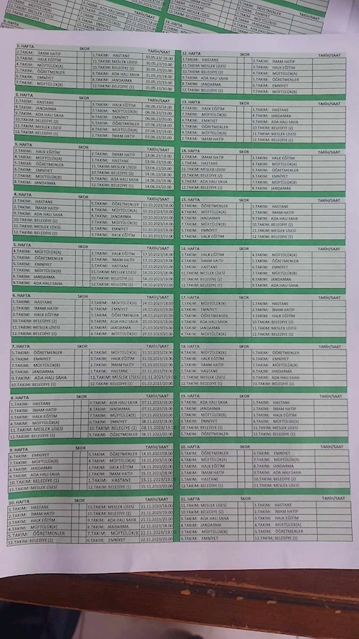 Kurumlar arası futbol turnuvasında 5 nci hafta maçlarında 17 ekim 2023 bu akşam ve 18 ekim 2023 çarşamba maçları