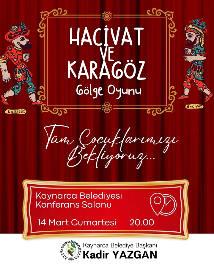 Ramazanlarımızın vazgeçilmezi hacivat karagöz gölge oyunu nu Kaynarca Belediyesi çocuklarımız ile buluşturuyor. Haydi çocuklar Başkan Kadir Yazgan sizleri 14 mart 2026 cumartesi akşamı bekliyor.