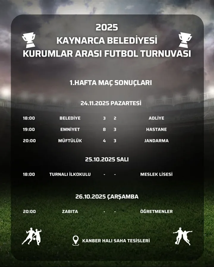 Kaynarca Belediyesi’nin düzenlediği “2025 Yılı Kurumlar Arası Futbol Turnuvası” Kanber Halı Saha Tesisleri’nde başladı.