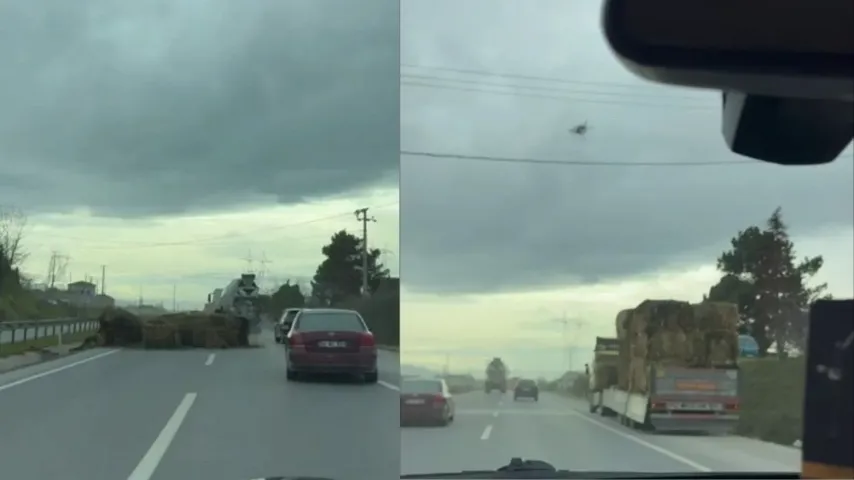 1- Adapazarı Dağdibi Mahallesi mevkiinde D020 kara yolunda meydana gelen olayda, seyir halindeki tırın dorsesinden çok sayıda saman balyası düştü. Kara yolunun bir bölümünü kaplayan balyalar sebebiyle sürücüler zor anlar yaşarken, trafikte kısa süreli aksama meydana geldi.İhbar üzerine bölgeye sevk edilen ekipler, yola dökülen saman balyalarını kaldırarak yolu yeniden trafiğe açtı. Olayda herhangi bir kazanın yaşanmaması muhtemel bir faciayı önledi. Yola dökülen saman balyaları cep telefonu kamerasına yansıdı.